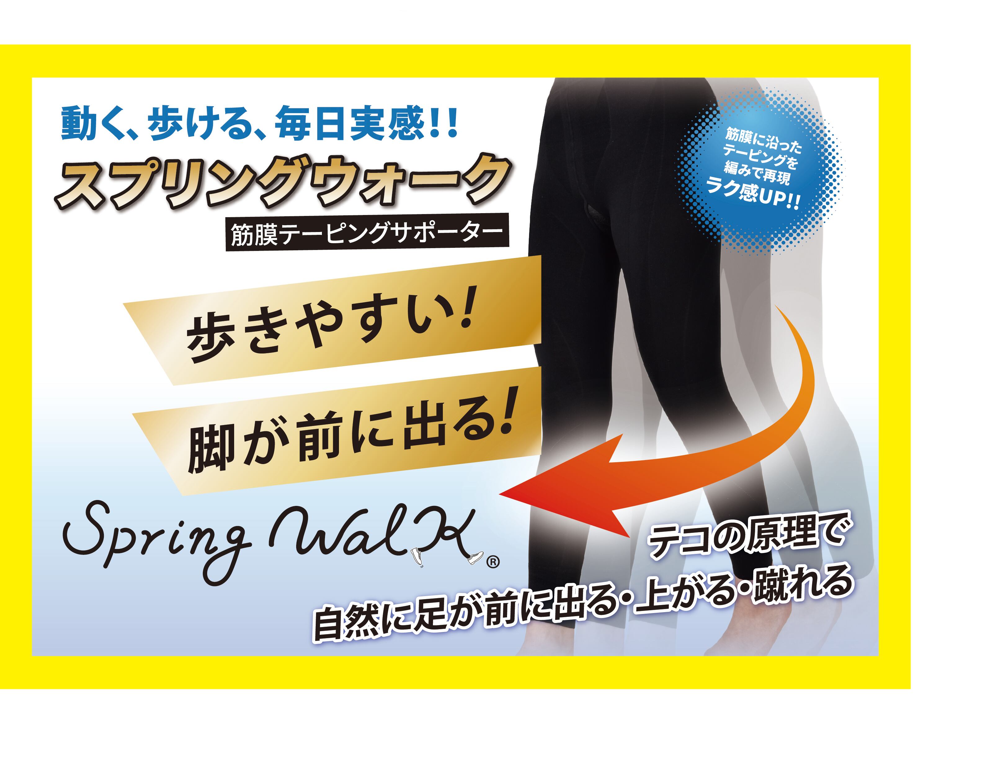 筋膜サポートで歩き易く姿勢が良くなり、全身の骨格バランスを整えてよりサポート