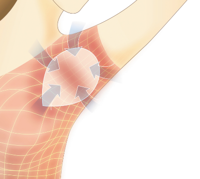 *パットが前についているため、脇の汗を的確にキャッチ。(脇の汗腺が集まっている所に的確に当たるように作られています。)