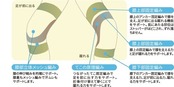 上部アンカー部(膝上部固定編み)にストッパーを施し、ズレによるストレスを解消。