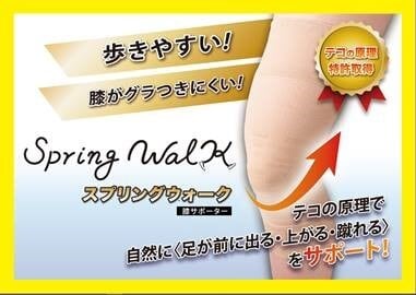スプリングウォーク膝サポーターは、テコの原理を活用して足が前に出る、蹴れる、上がるという革新的な設計の膝サポーターです(特許取得済み)。長時間立ち仕事や歩行が多い方に特におすすめ。軽量で通気性に優れた素材を使用し、快適な着用感を実現しています。